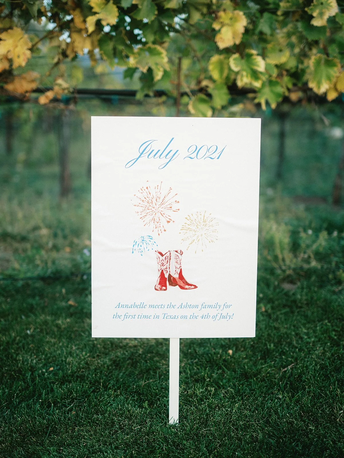 Drawing on the bride’s love of French art and design, and the venue’s French -Château, this wedding perfectly melded the venue with the event! This project included custom hand-painted, die cut signage throughout the venue, as well as simple table labels, and our signature custom-illustrated love story timeline.